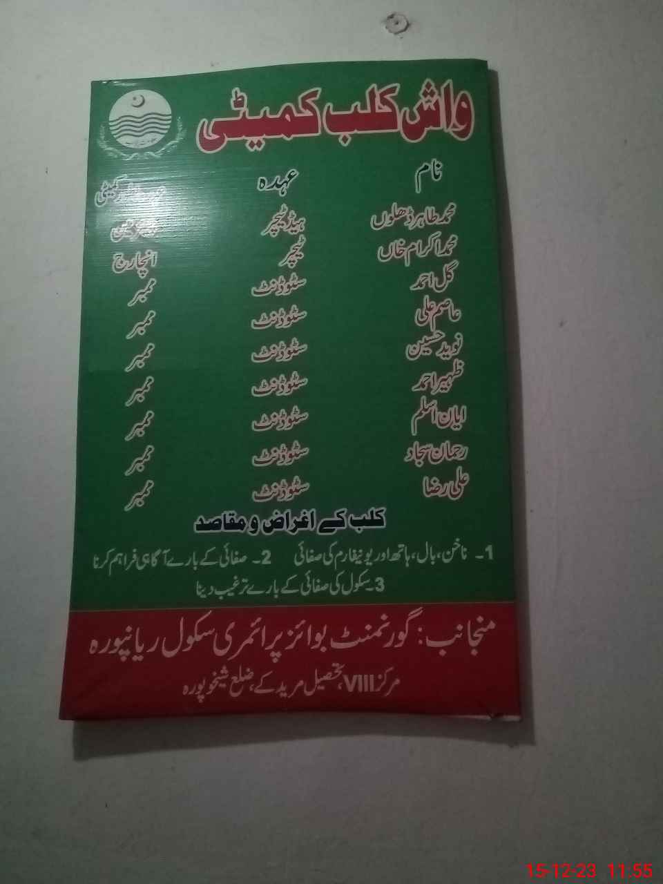 | District: SHEIKHUPURA | Tehsil: MURIDKE | Markaz: BHIANWALA-MALE | Level: Primary | |