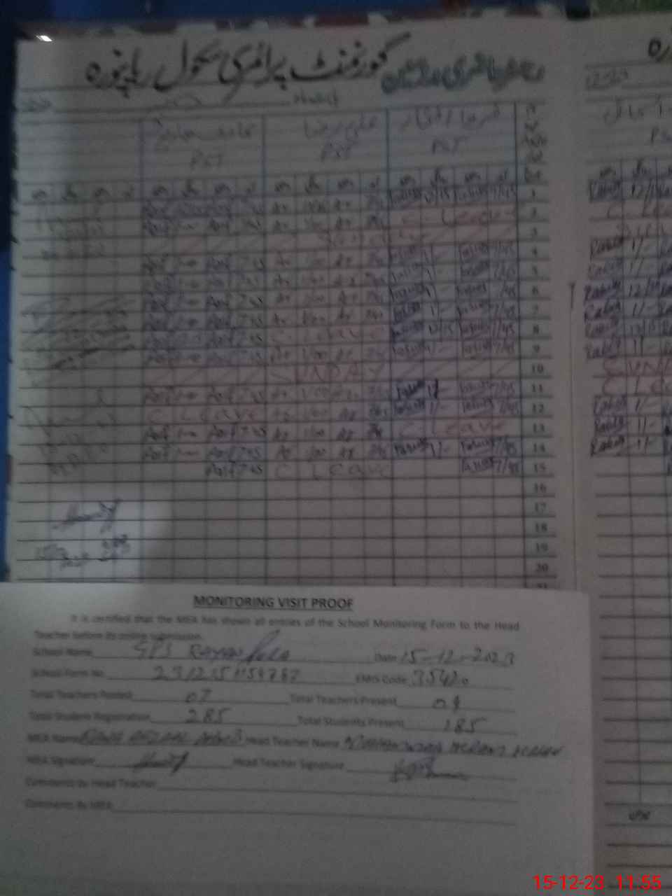 | Attendance Register | Head Teacher | MEA with School | Visit Proof |