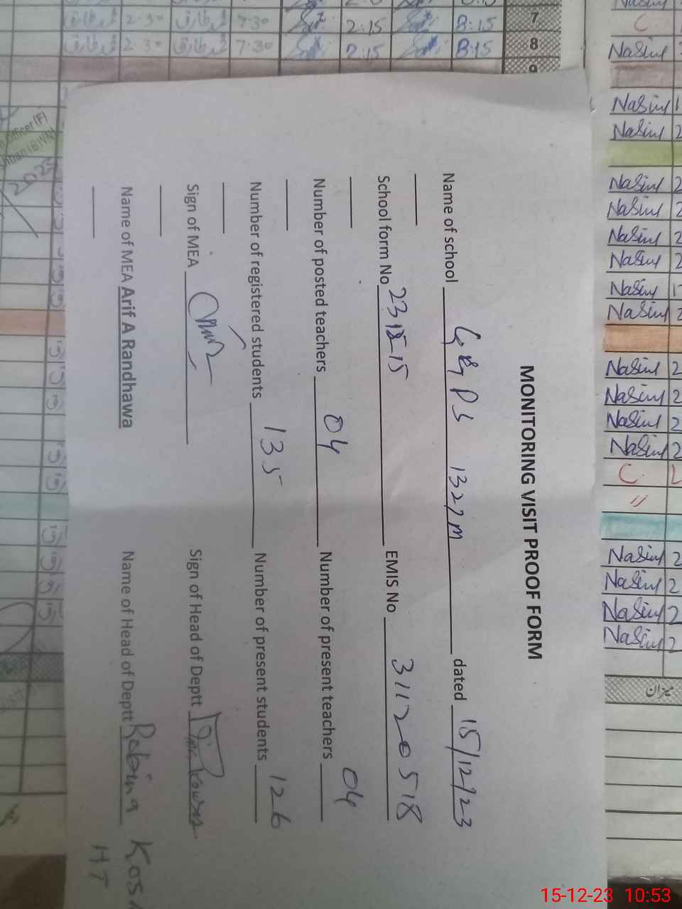| Name: SA**** HU**** Designation: (School Headmaster's/Headmistress's) PST Phone/Cell Number: 03**** |