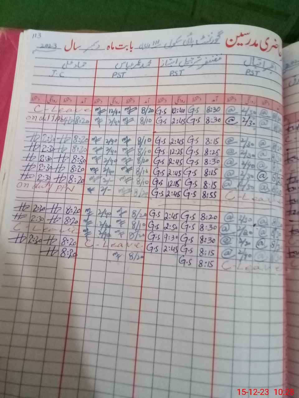 | Leave | Duty | Absent | Maternity | Medical | Ex- Pak |