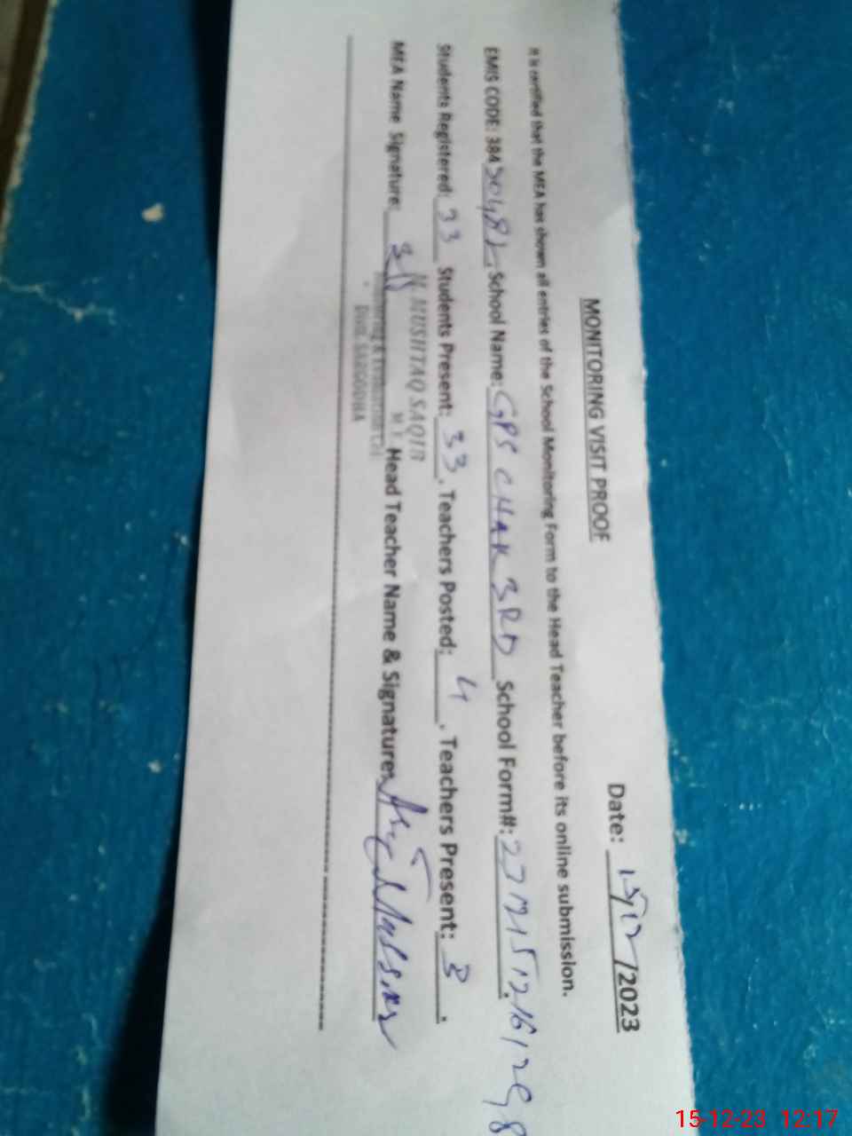 | EMIS Code: 38420482 | Name of School: GPS CHAK NO.3 REMOUNT DEPOT | |||