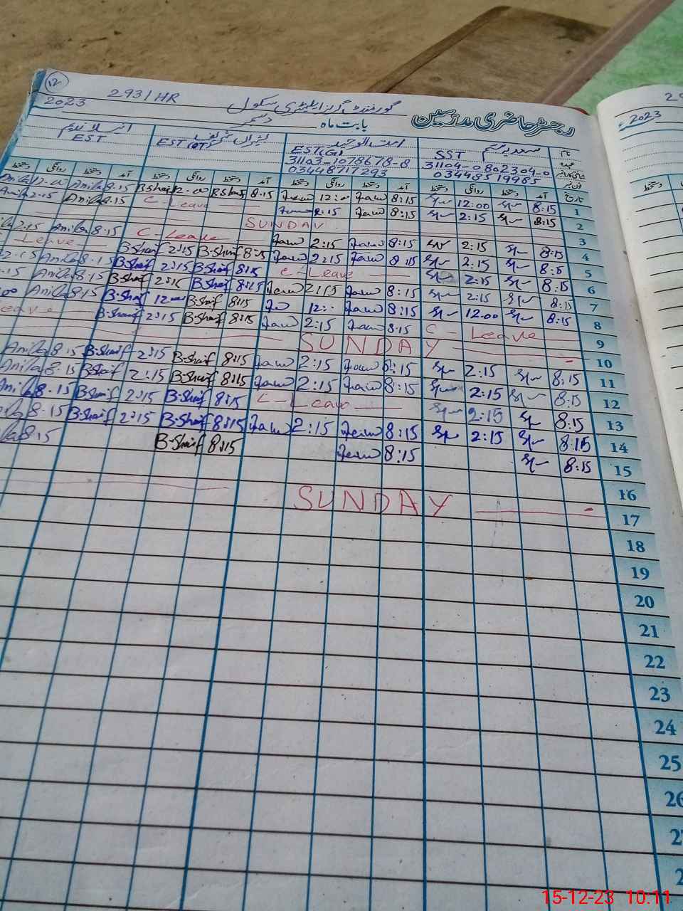 | CNIC | Full Name | Designation | R/C | Absence During Last Calender Month |