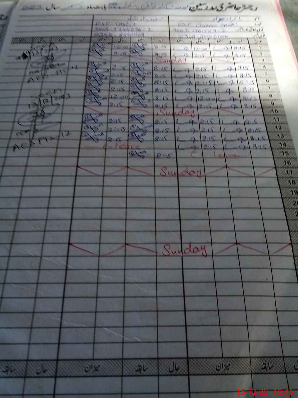 | CNIC | Full Name | Designation | R/C | Absence During Last Calender Month |