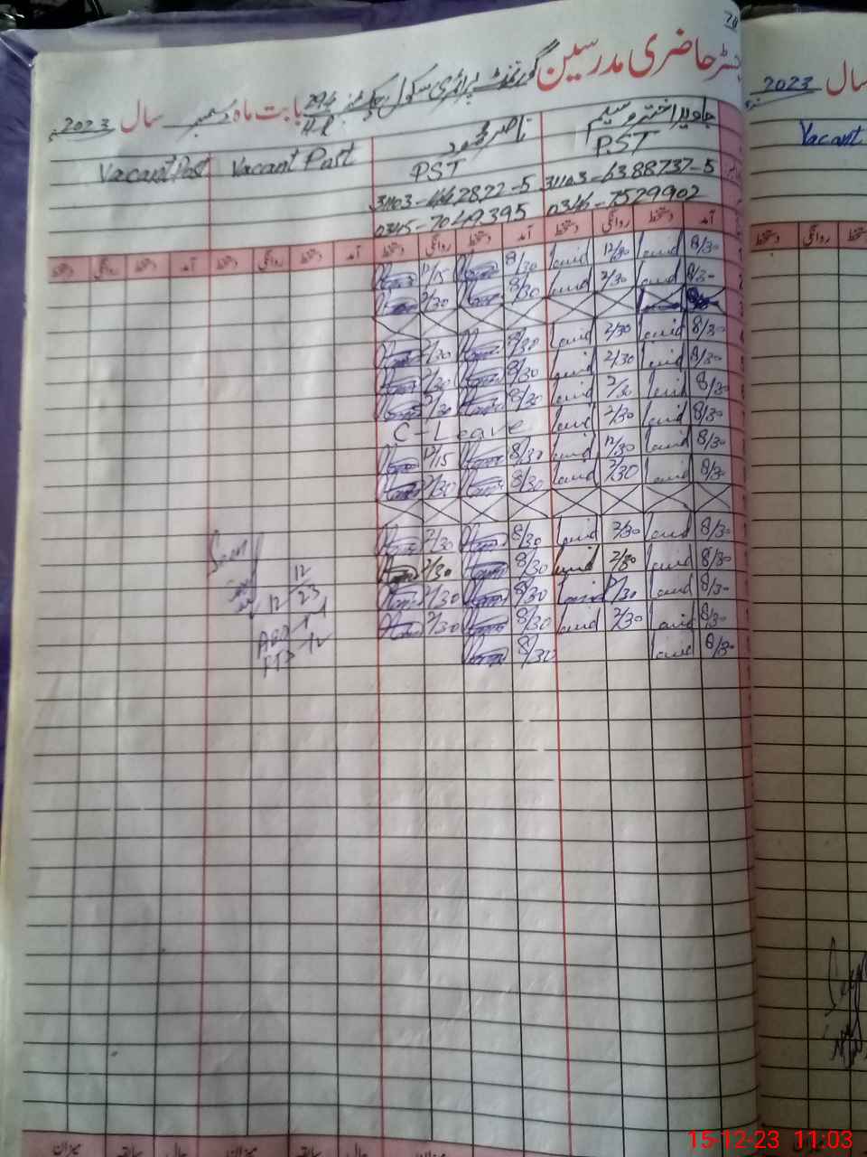 | CNIC | Full Name | Designation | R/C | Absence During Last Calender Month |