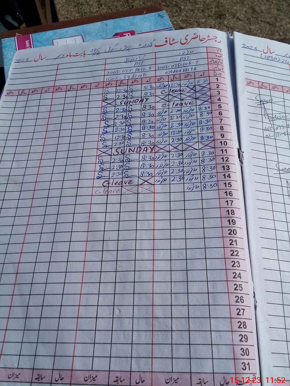 | CNIC | Full Name | Designation | R/C | Absence During Last Calender Month |