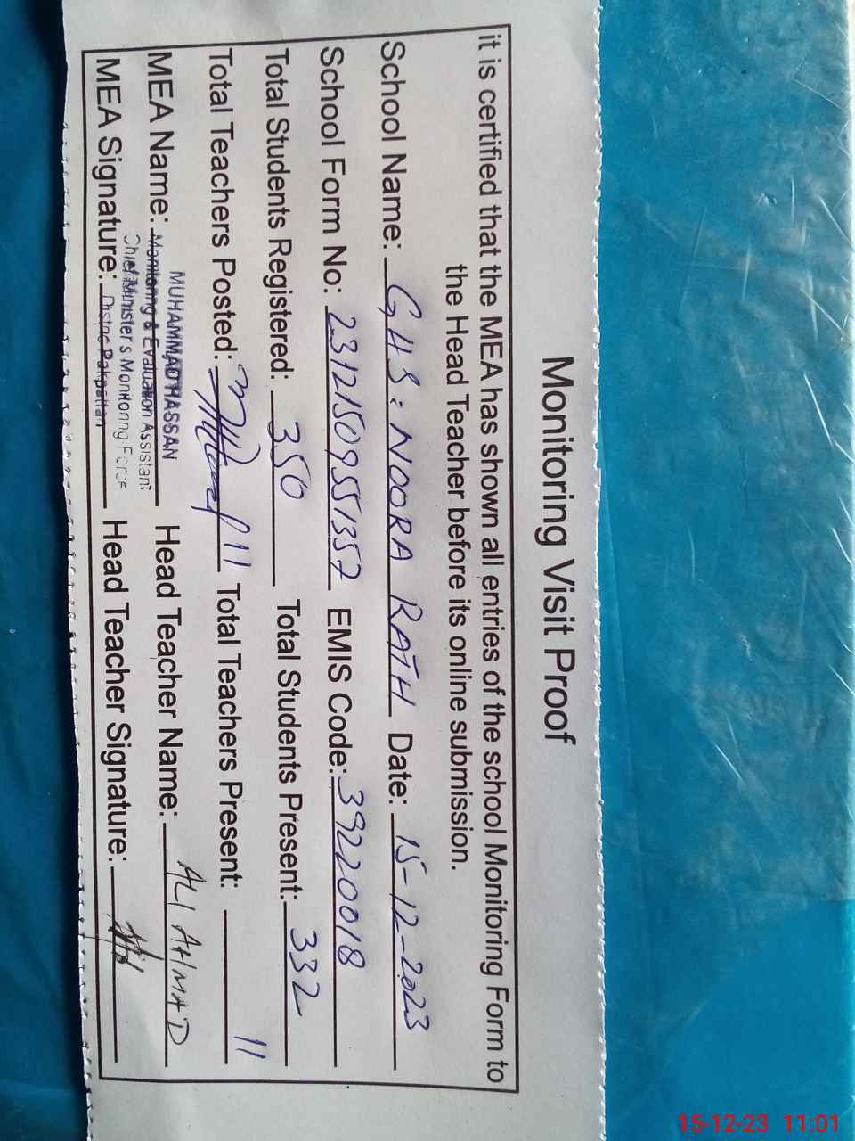 | EMIS Code: 39220018 | Name of School: GHS NOORA RATH | |||