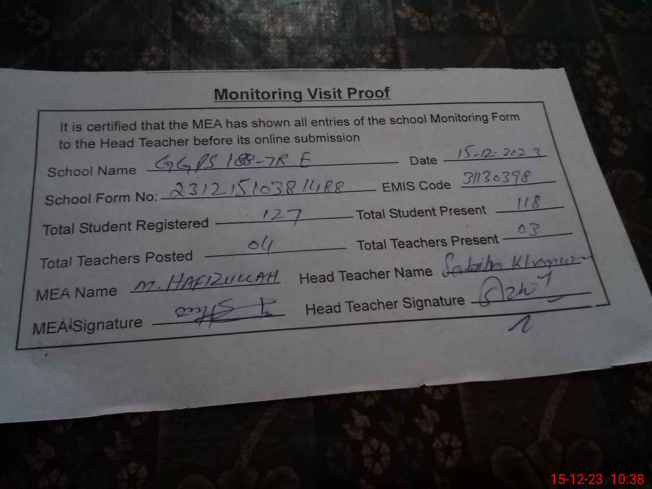 | EMIS Code: 31130398 | Name of School: GGPS CHAK NO 188/7-R E | |||