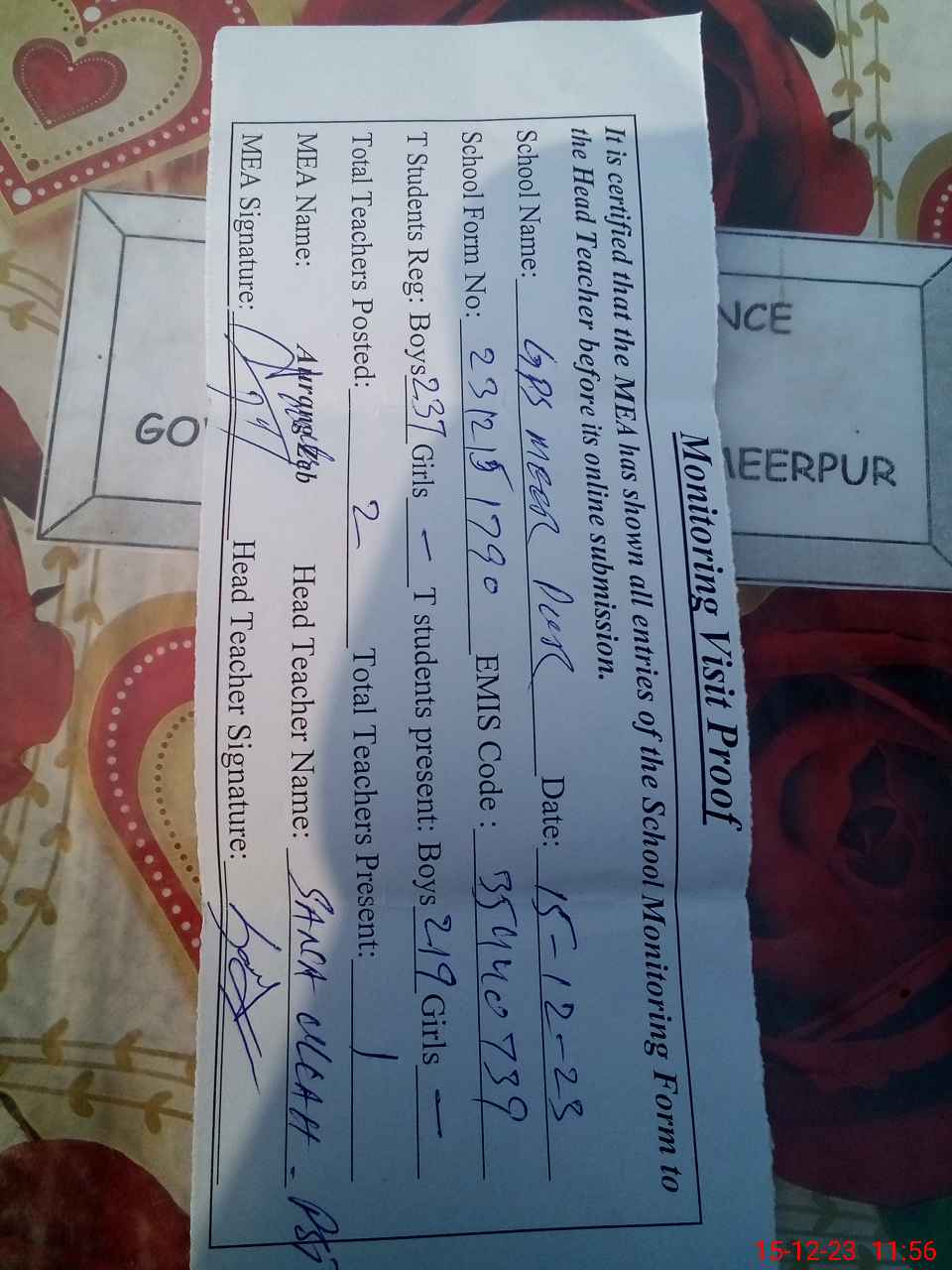 | EMIS Code: 35440739 | Name of School: GPS MEER PUR | |||