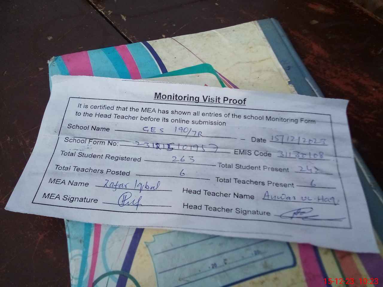 | EMIS Code: 31130108 | Name of School: GHS CHAK NO.190/7-R | |||