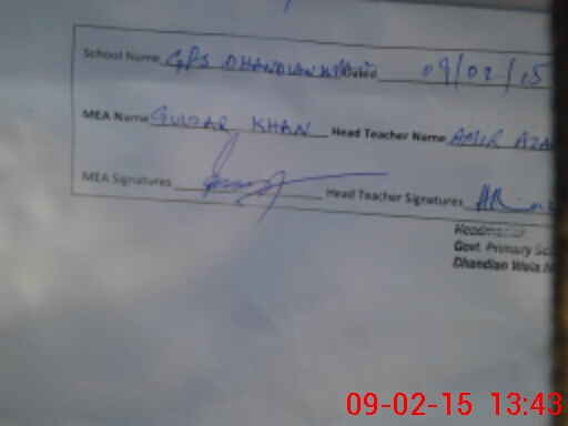 | Certified that this School was Inspected by the Undersigned MEA/DMO Today and the Information Stated Above is as Per Record. | |||||
