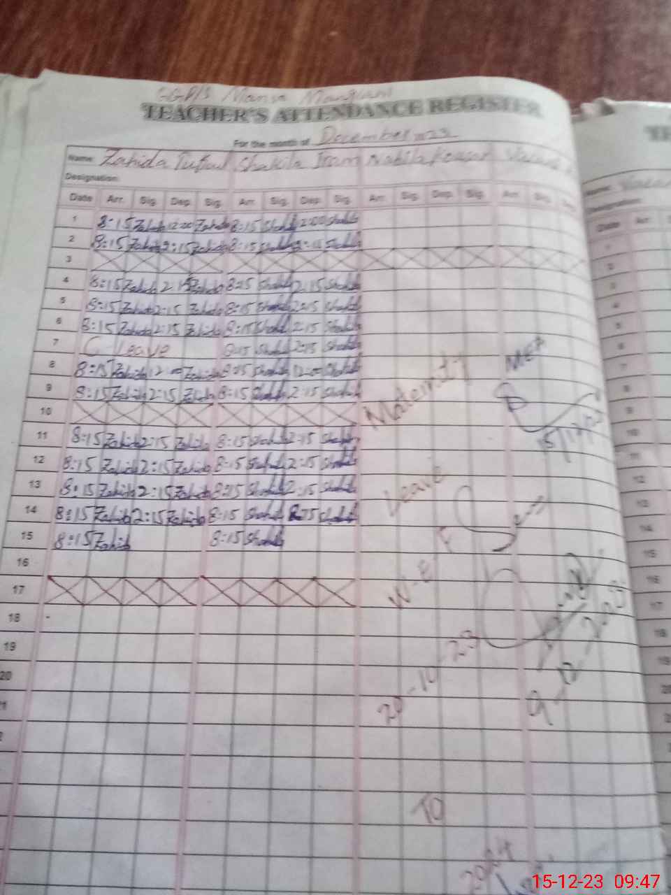 | Monitoring Date: 15-12-2023 | Start Time: 15-12-2023 09:24 AM | End Time: 15-12-2023 09:54 AM | Name of MEA: Sa**** Ah**** | |