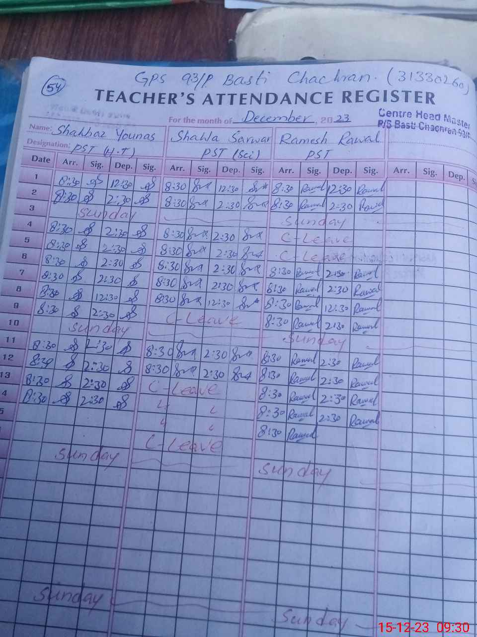| EMIS Code: 31330260 | Name of School: GPS BASTI CHACHRAN 93/P | |||