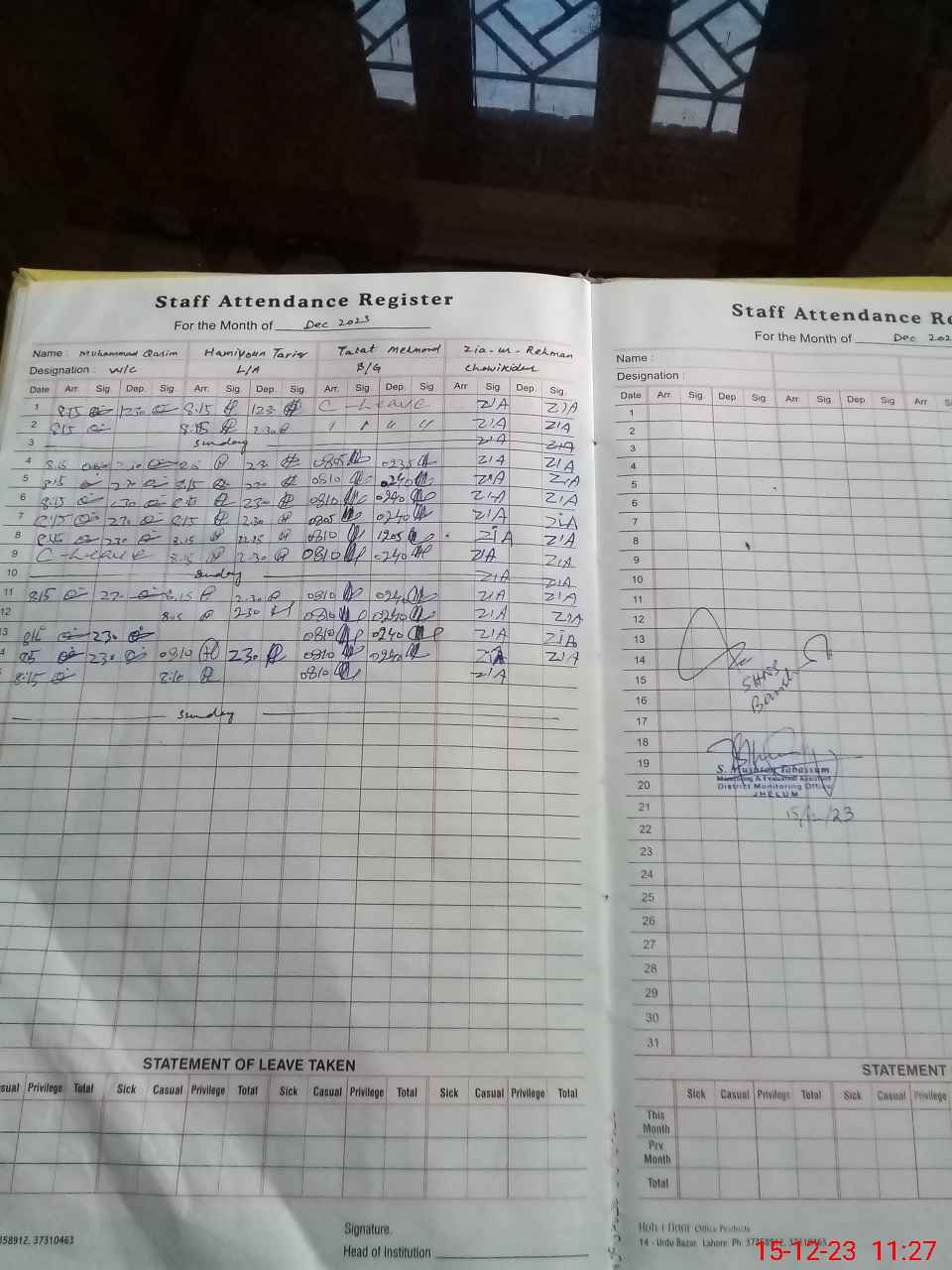 | Total no. of Classrooms: 10 No. of Classrooms Used for Teaching: 10 No. of Classrooms Storing Old Furniture, FTBs, etc: 0Comments if Any: Mustansar Javed EST is absent unauthorized He proceeded abroad without sanctioned EX Pakistan leave |