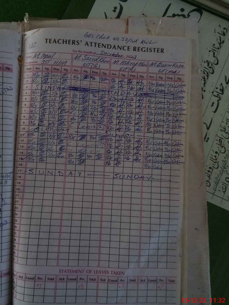 | Name: Mu**** Iq**** Designation: (School Headmaster's/Headmistress's) SST Phone/Cell Number: 03**** |