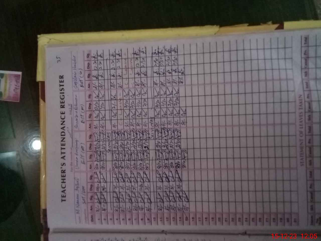 | CNIC | Full Name | Designation | R/C | Absence During Last Calender Month |