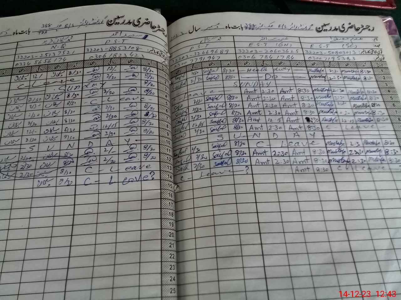 | CNIC | Full Name | Designation | R/C | Absence During Last Calender Month |