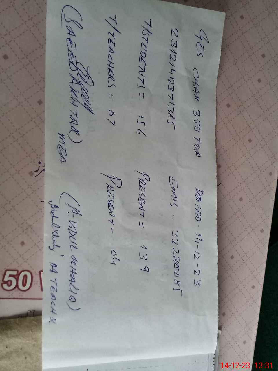 | Name: As**** Designation: (School Headmaster's/Headmistress's) Incharg Head Phone/Cell Number: 03**** |