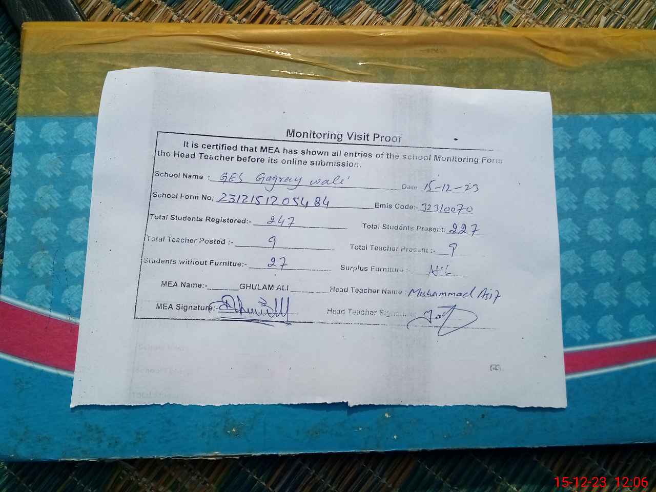 | EMIS Code: 32310070 | Name of School: GES GAGRAY WALI | |||