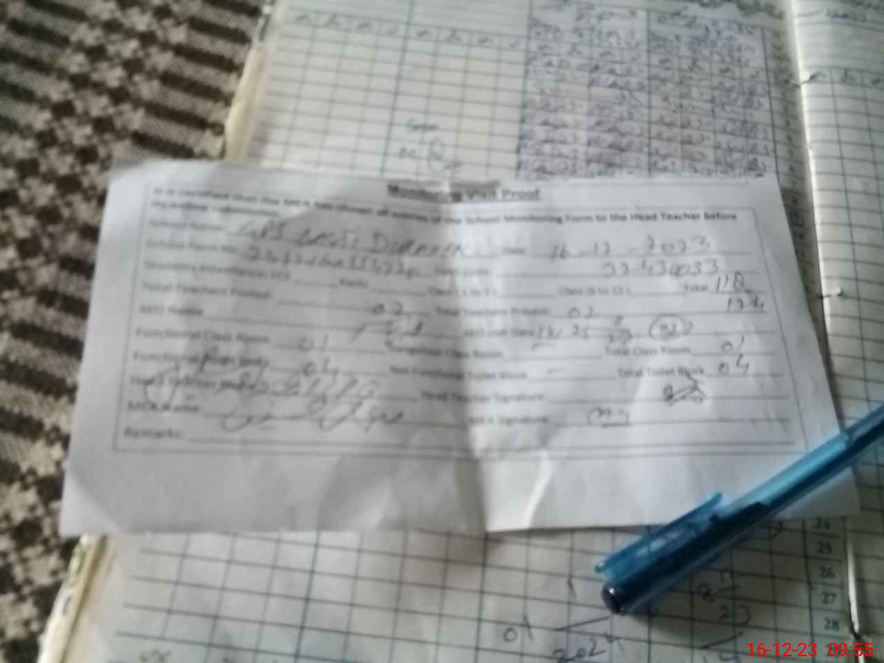 | Attendance Register | Head Teacher | MEA with School | Visit Proof |