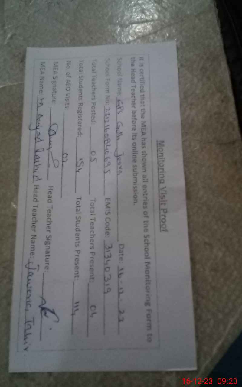| EMIS Code: 31340319 | Name of School: GPS GOTH JOORA | |||