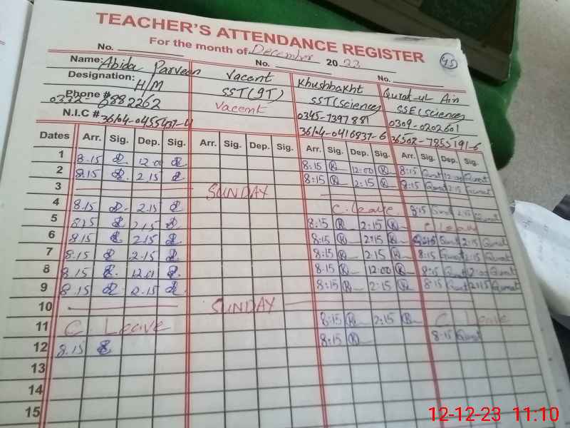 | Name: SA**** AB**** Designation: (School Headmaster's/Headmistress's) SST GENERAL Phone/Cell Number: 03**** |