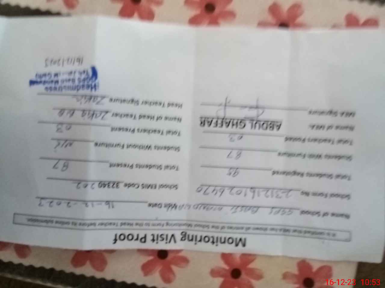 | Certified that this School was Inspected by the Undersigned MEA/DMO Today and the Information Stated Above is as Per Record. | |||||