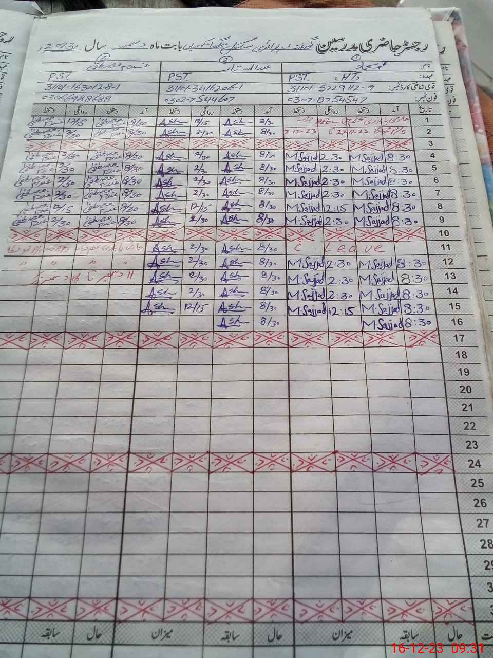 | Name: Mu**** Sa**** Designation: (School Headmaster's/Headmistress's) PST Phone/Cell Number: 03**** |