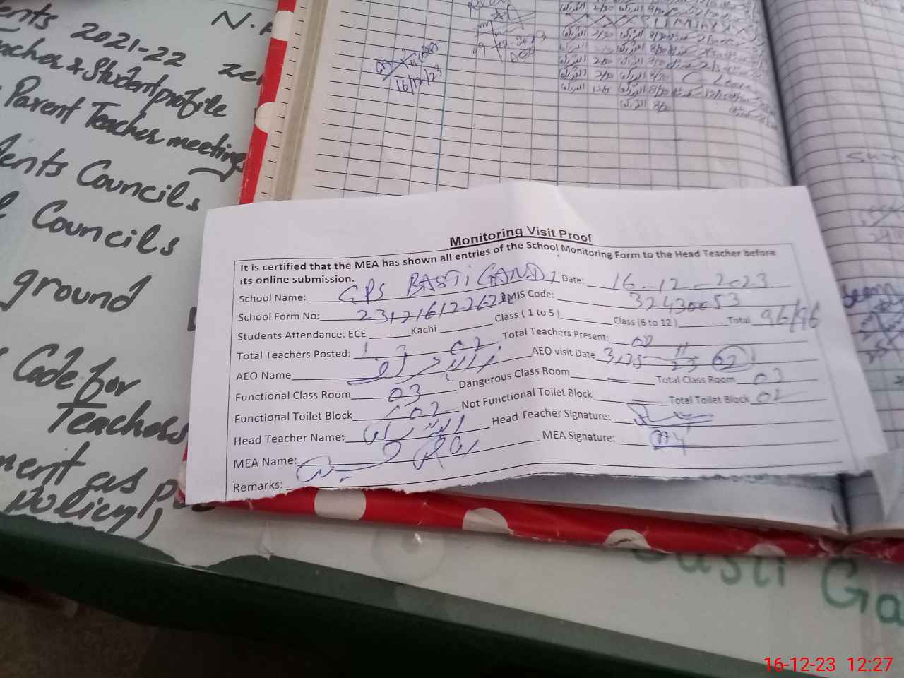 | EMIS Code: 32430053 | Name of School: GPS BASTI GANDI | |||