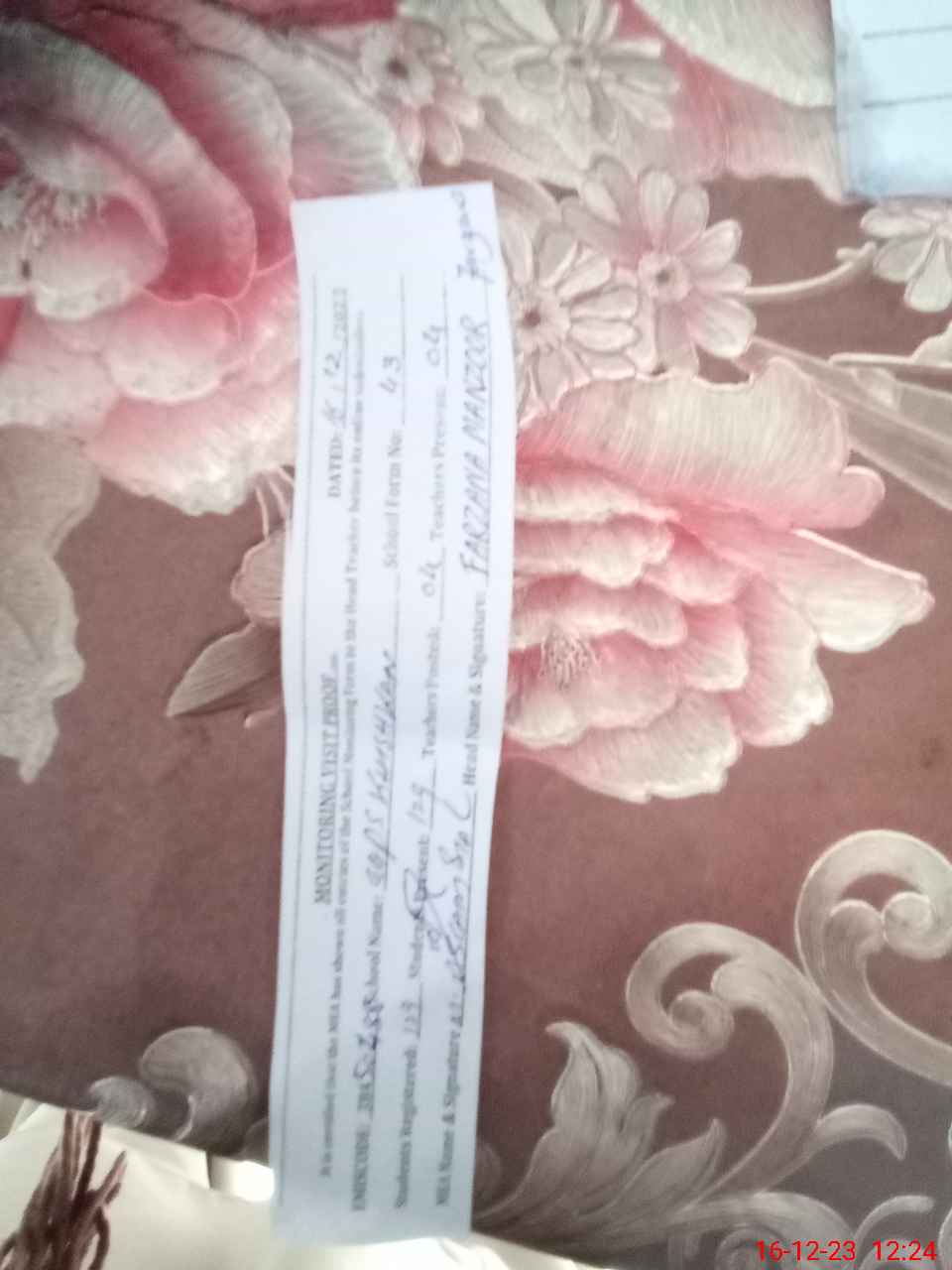 | Name: FA**** MA**** Designation: (School Headmaster's/Headmistress's) PTC/JV Phone/Cell Number: 03**** |