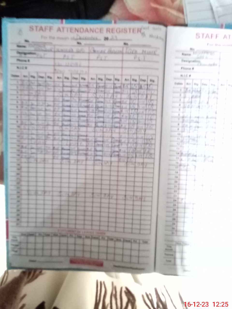 | CNIC | Full Name | Designation | R/C | Absence During Last Calender Month |