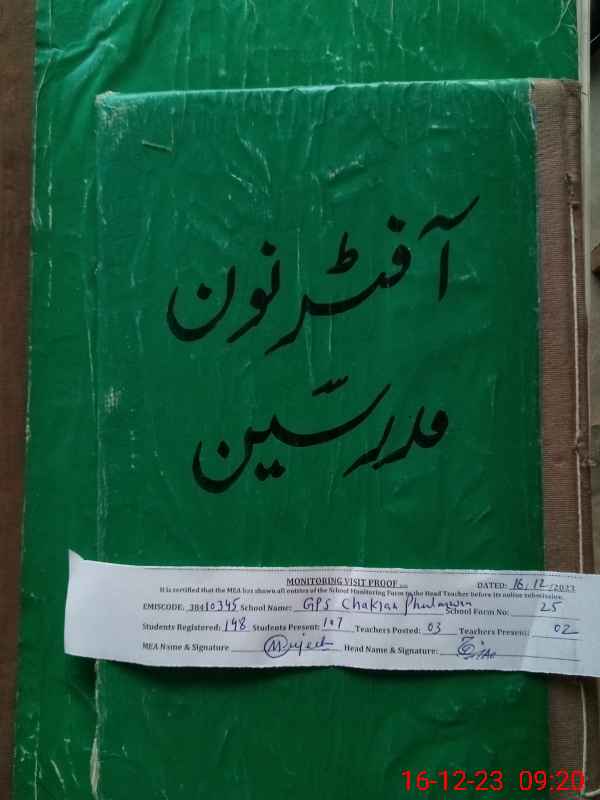 | EMIS Code: 38410345 | Name of School: GPS CHAKIAN PHULARWAN | |||