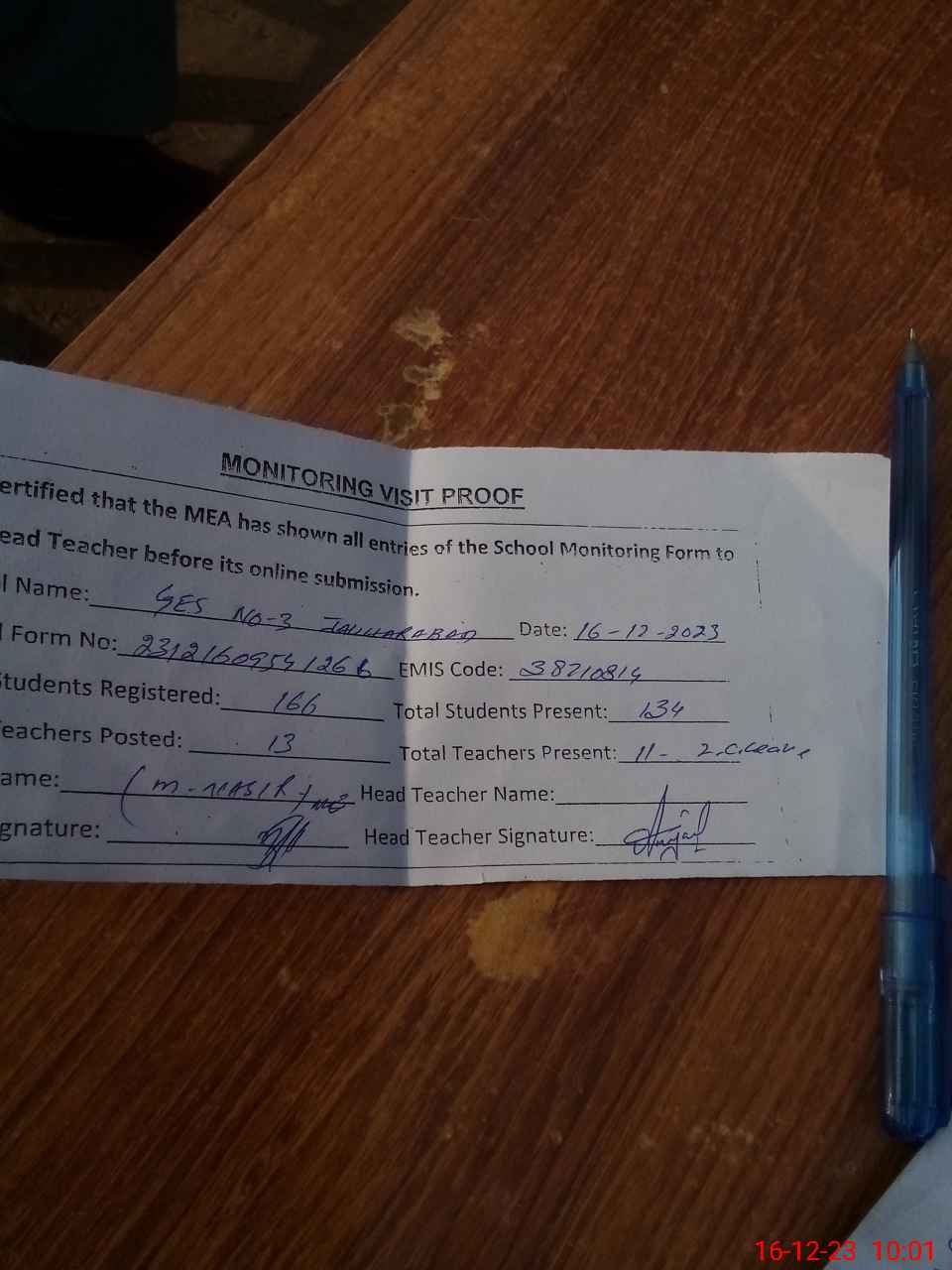 | EMIS Code: 38210814 | Name of School: GES NO. 3 JAUHARABAD | |||