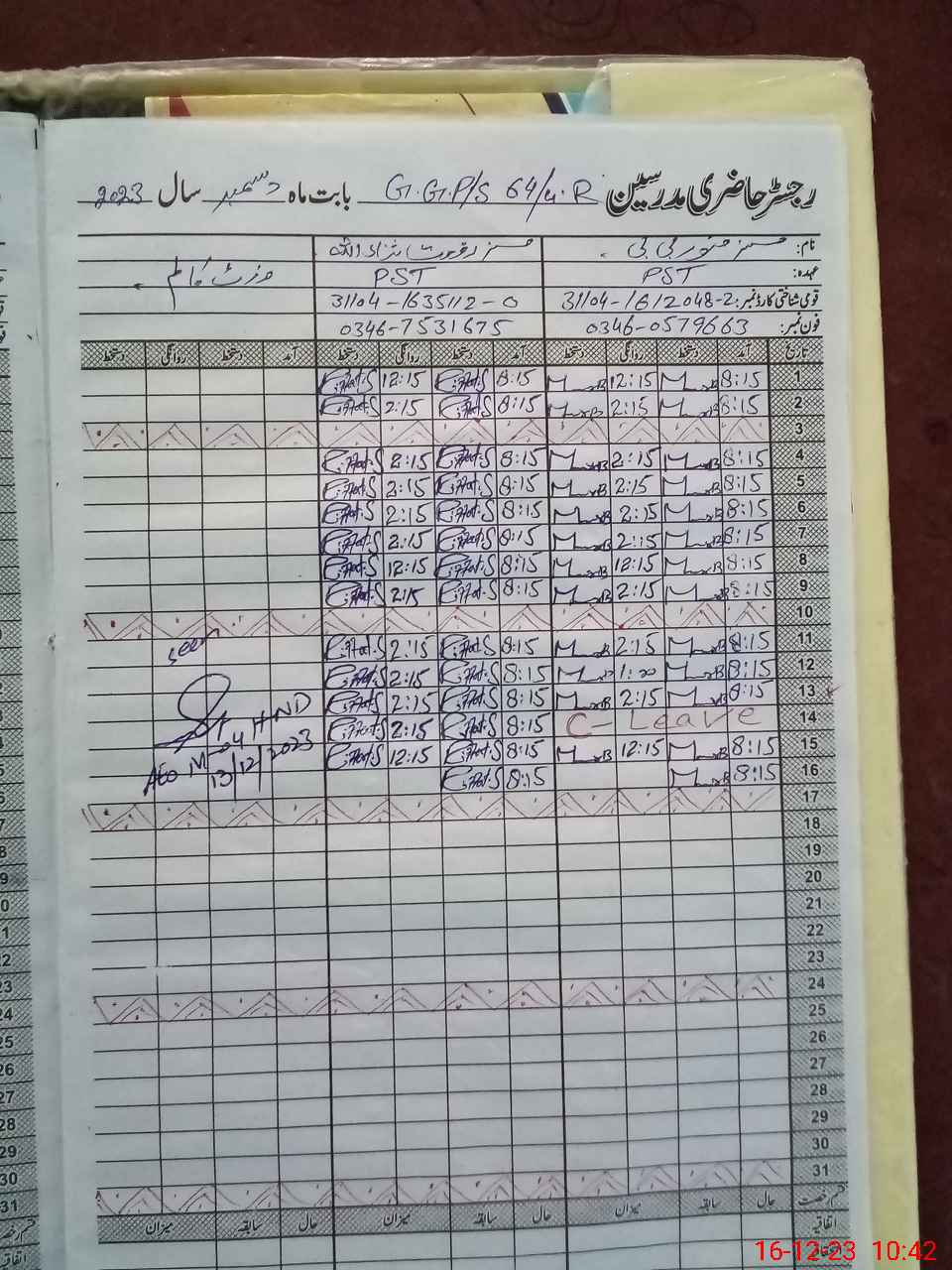 | Name: MU**** BI**** Designation: (School Headmaster's/Headmistress's) PST Phone/Cell Number: 03**** |
