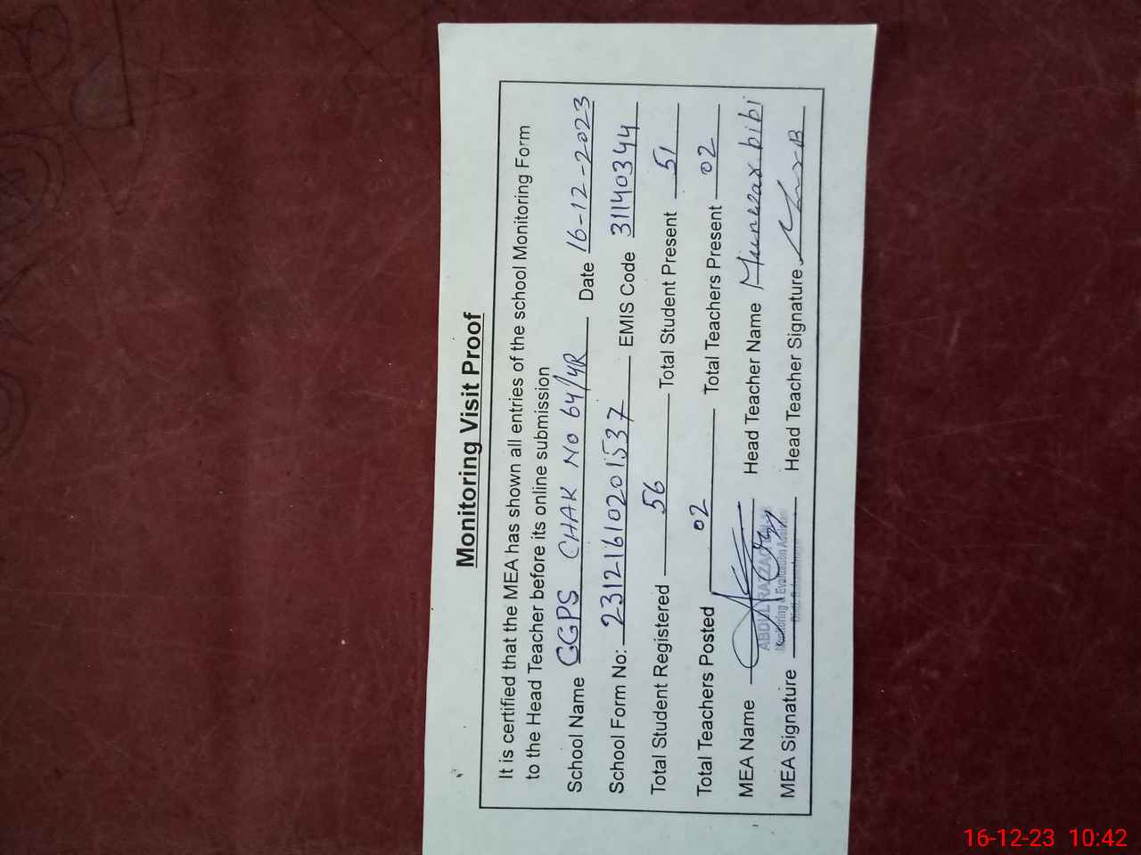 | EMIS Code: 31140344 | Name of School: GGPS CHAK NO 64/4-R | |||