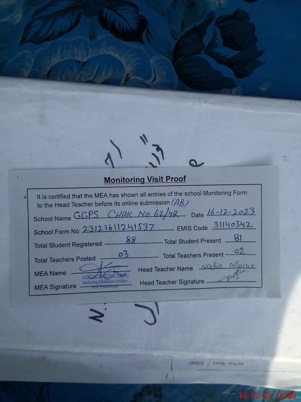| EMIS Code: 31140342 | Name of School: GGPS CHAK 62/4-R AB | |||