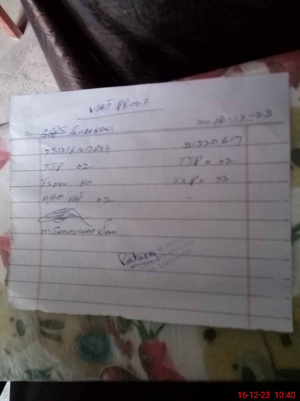 | Monitoring Date: 16-12-2023 | Start Time: 16-12-2023 10:17 AM | End Time: 16-12-2023 10:40 AM | Name of MEA: Mu**** Sa**** Ul**** Sa**** | |