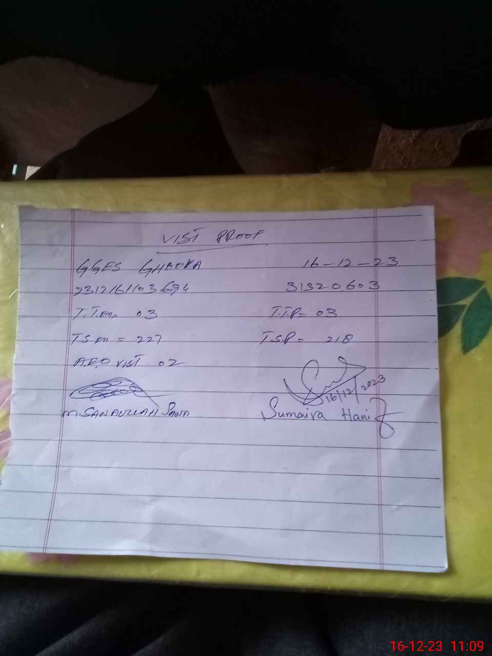 | Monitoring Date: 16-12-2023 | Start Time: 16-12-2023 10:49 AM | End Time: 16-12-2023 11:09 AM | Name of MEA: Mu**** Sa**** Ul**** Sa**** | |