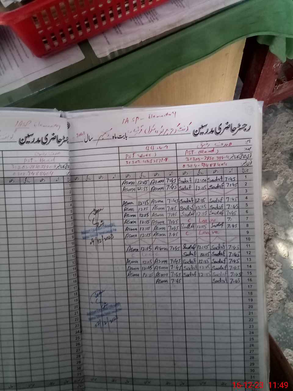 | Name: SA**** RA**** Designation: (School Headmaster's/Headmistress's) PST Phone/Cell Number: 03**** |