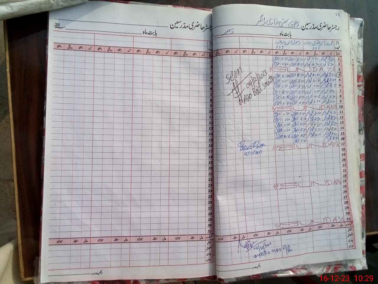 | CNIC | Full Name | Designation | R/C | Absence During Last Calender Month |