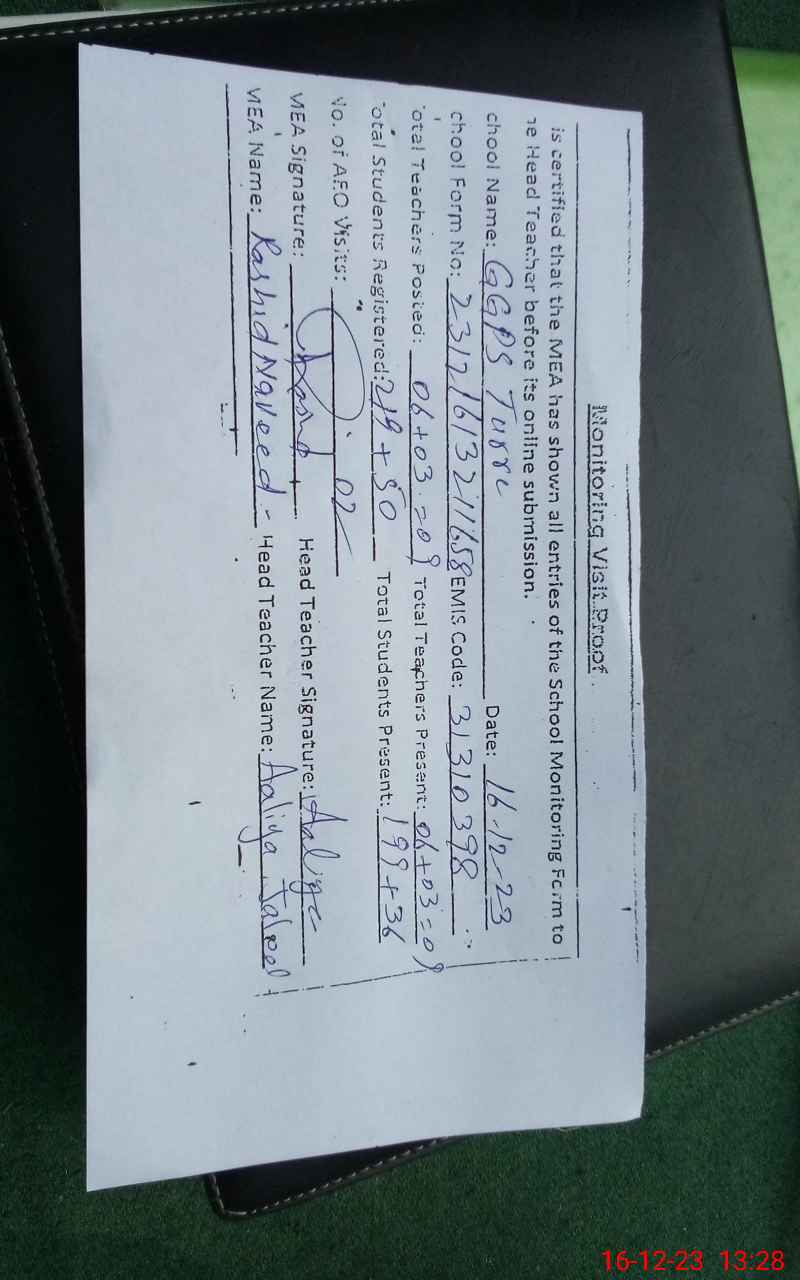 | EMIS Code: 31310398 | Name of School: GGPS TUREE (After Noon) | |||