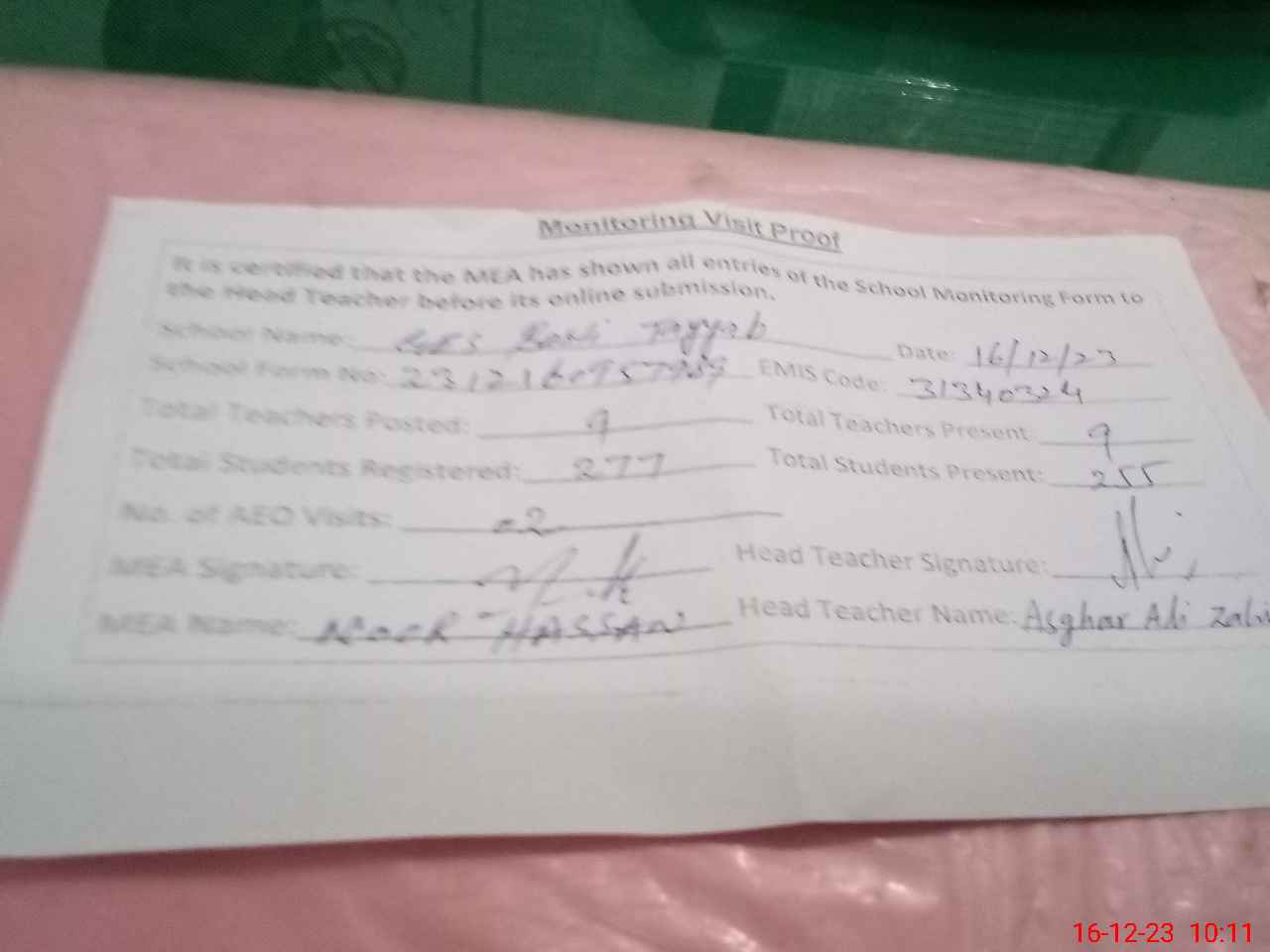 | EMIS Code: 31340324 | Name of School: GES BASTI TAYYAB | |||