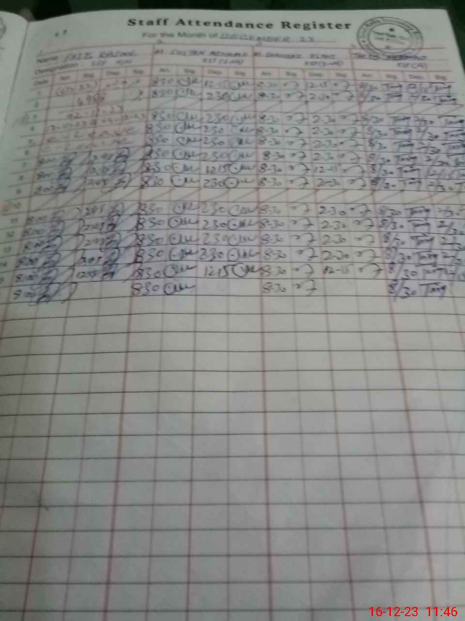 | Monitoring Date: 16-12-2023 | Start Time: 16-12-2023 11:46 AM | End Time: 16-12-2023 12:27 PM | Name of MEA: No**** Ha**** | |