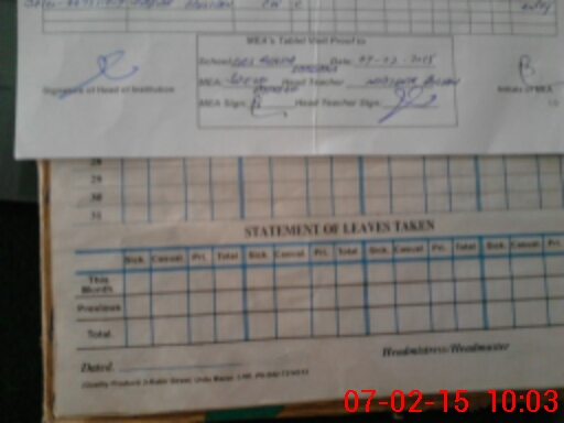 | Attendance Register | Head Teacher | MEA with School | Visit Proof |