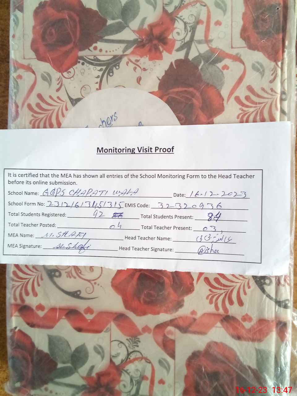 | EMIS Code: 32320936 | Name of School: GGPS CHAPATI WALA (BABA TEND DARBAR) | |||