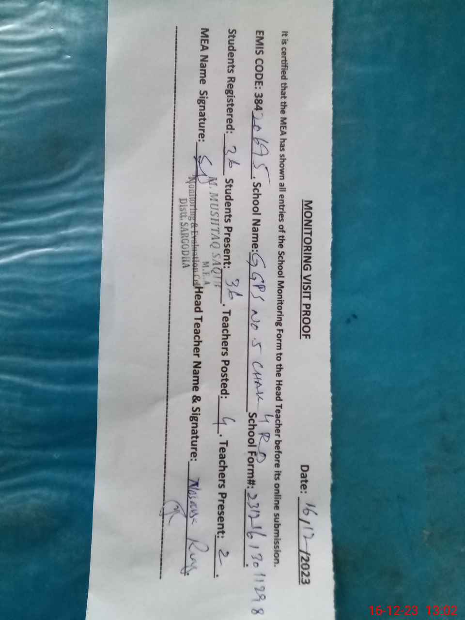 | EMIS Code: 38420695 | Name of School: GGPS NO 5 CHAK NO 4 REMOUNT DEPOT | |||