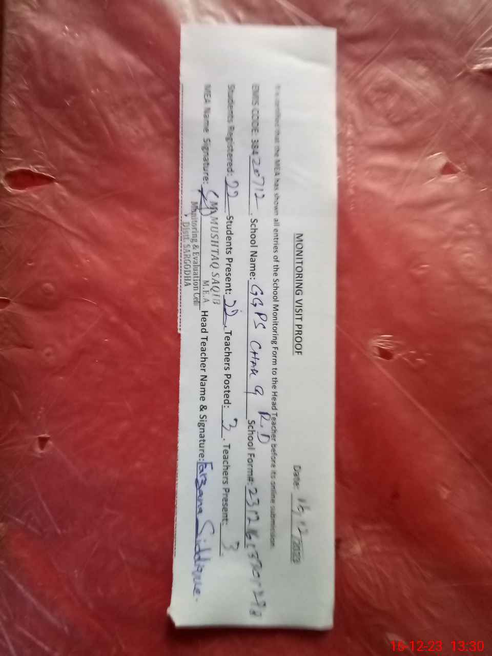| EMIS Code: 38420712 | Name of School: GGPS CHAK NO.9 REMOUNT DEPOT | |||