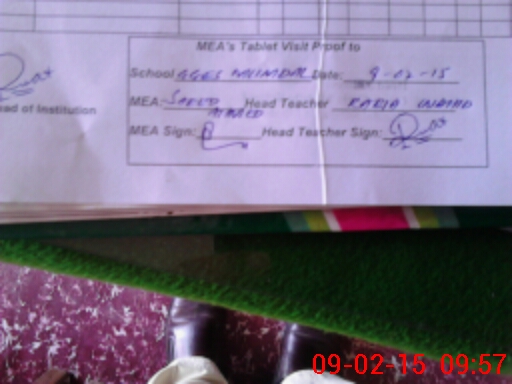 | Attendance Register | Head Teacher | MEA with School | Visit Proof |
