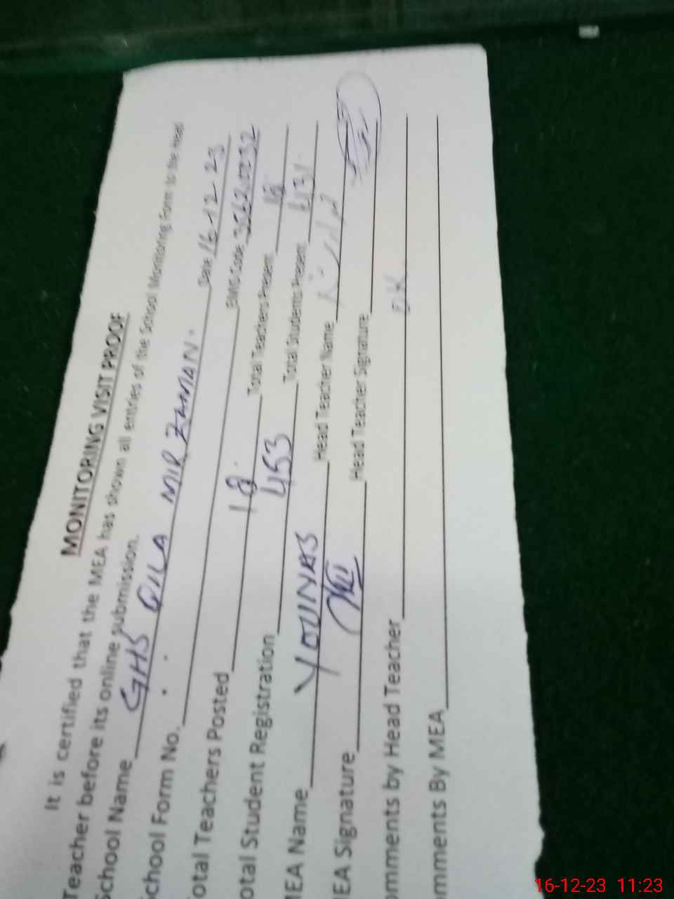 | EMIS Code: 35620032 | Name of School: GHS QILA MIR ZAMAN | |||