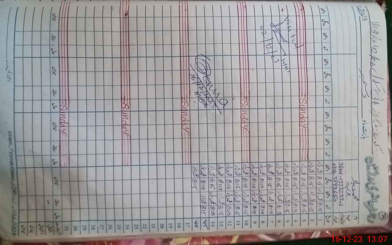 | CNIC | Full Name | Designation | R/C | Absence During Last Calender Month |