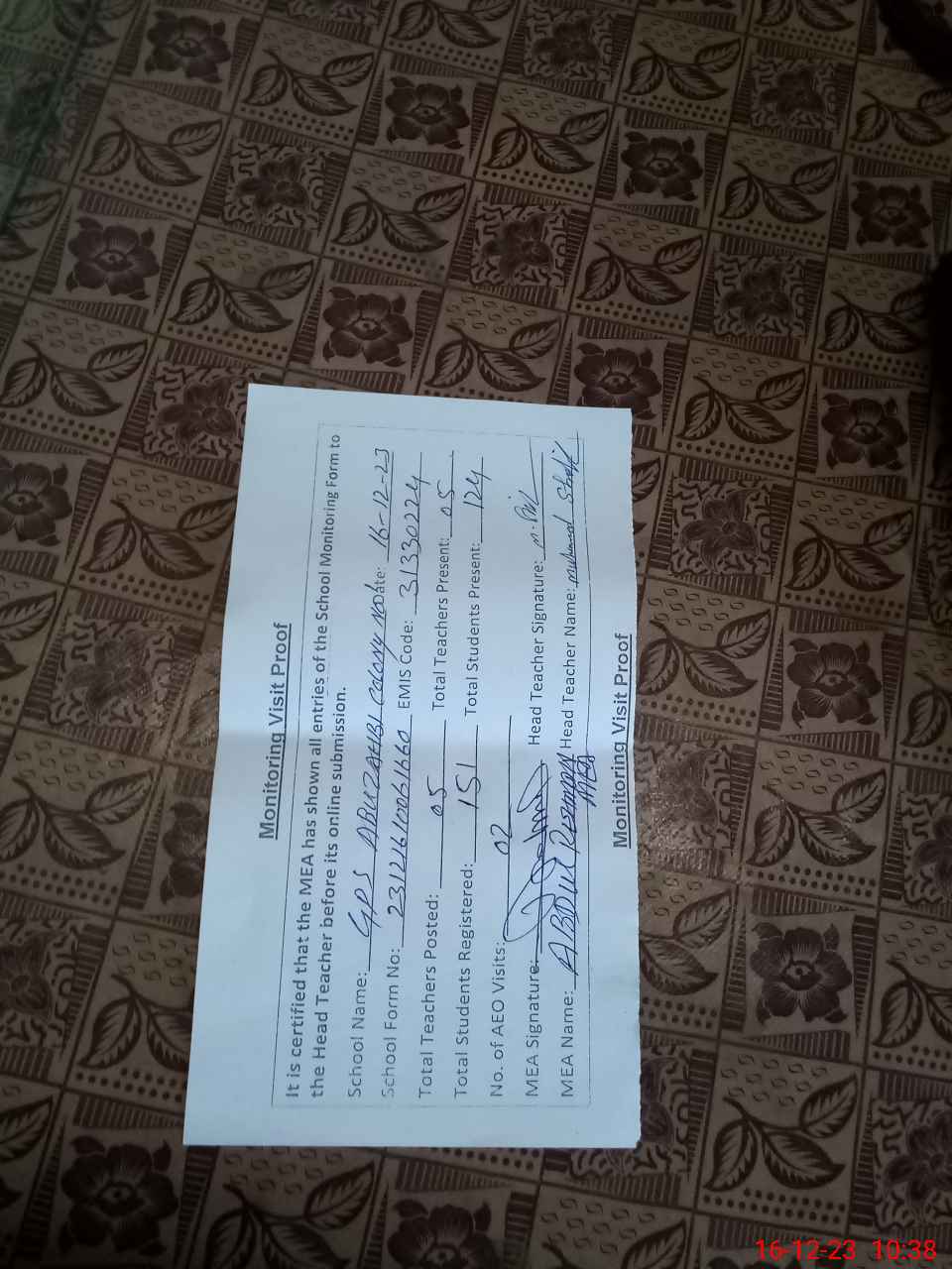 | EMIS Code: 31330224 | Name of School: GPS ABU ZAHBI COLONY NO. 1 | |||